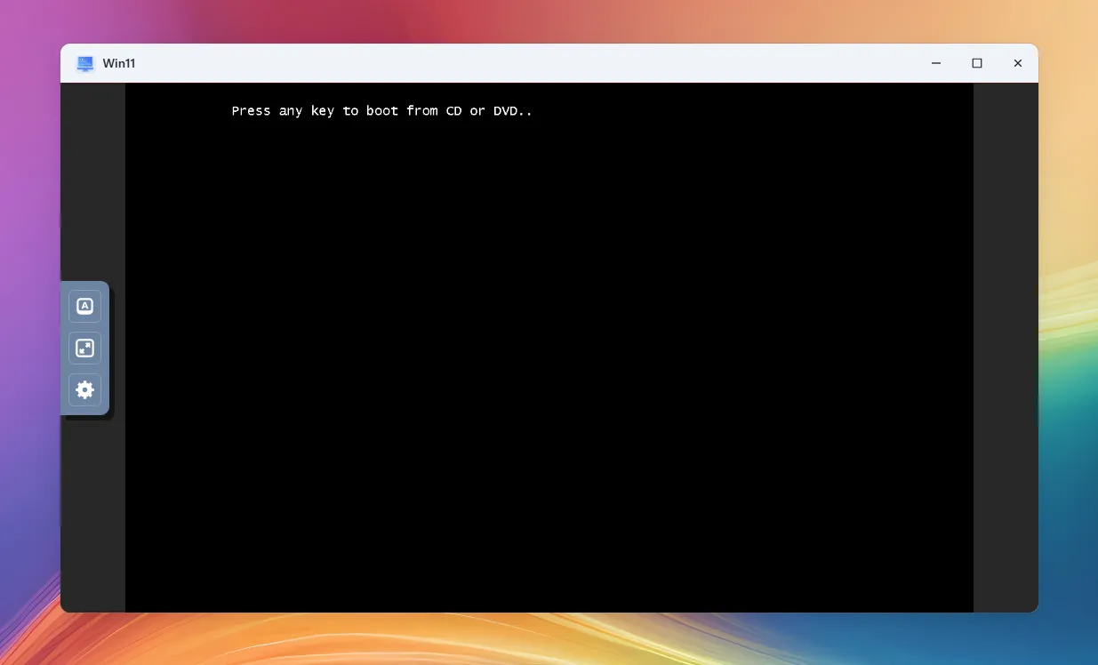 在正确配置后,开机、连接 VNC 后,注意要在画面出现 “Press any key to boot from CD or DVD” 时,点击键盘任意键,才能正常进入安装流程,该过程一般只停留几秒钟