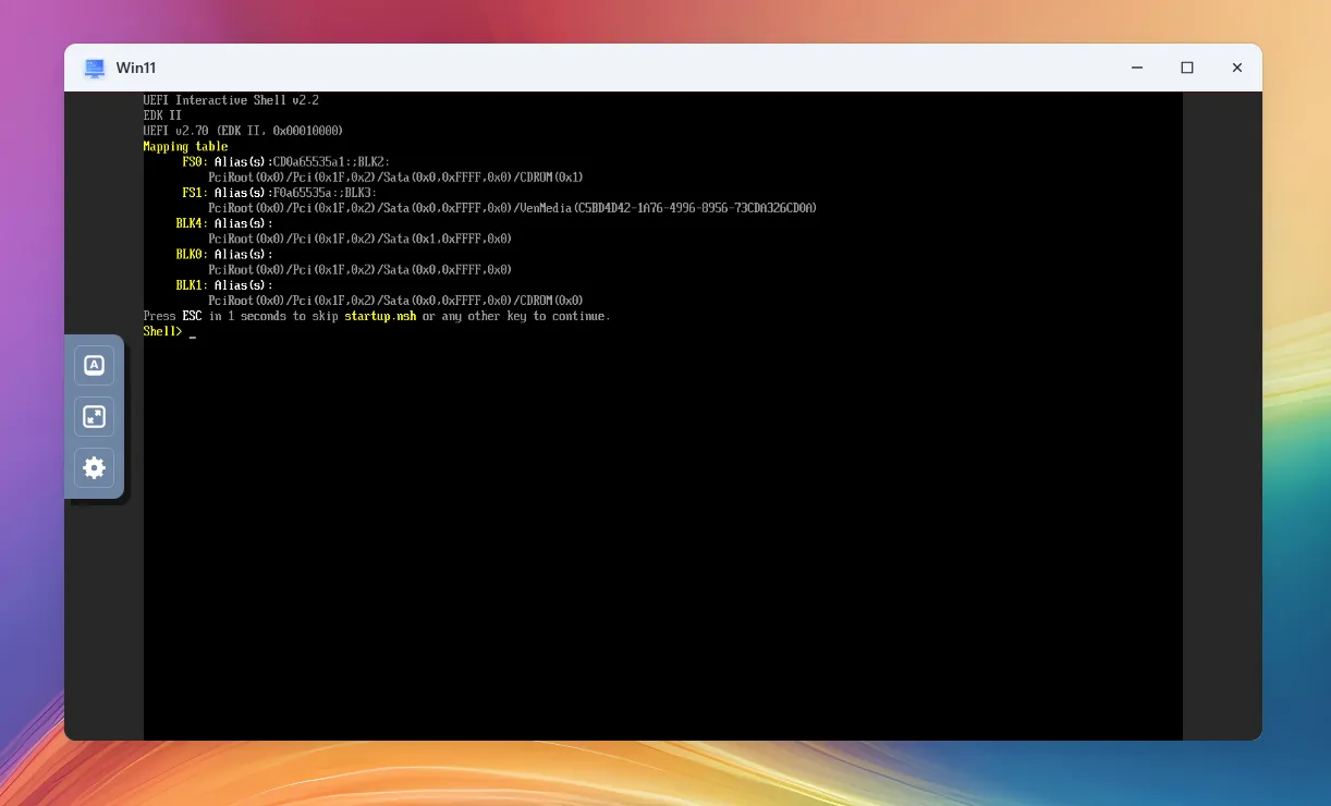 如没有点击,Windows 安装程序会自动进入 UEFI Shell 模式,而不是进入安装流程