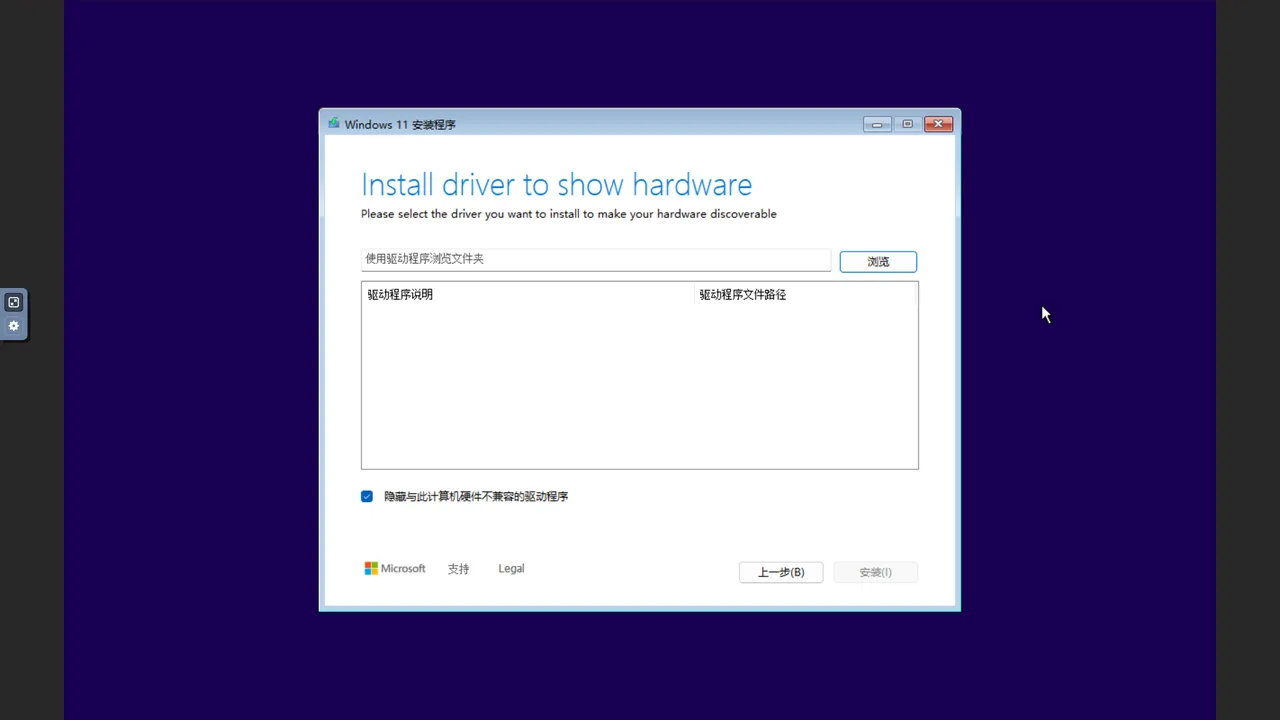 点击“浏览”,并选择 CD 驱动器 中的 amd64/win11 目录,点击确定。