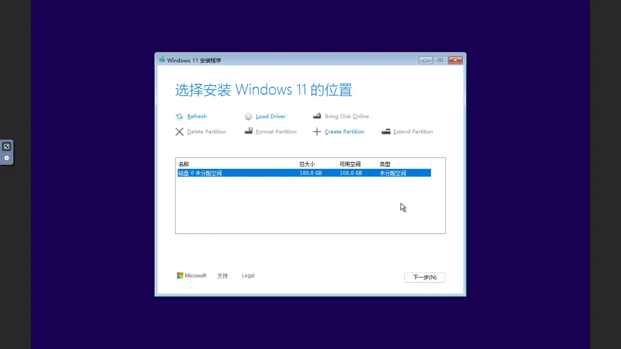 等待驱动安装完成后,即可识别虚拟磁盘,按指引继续安装流程。
